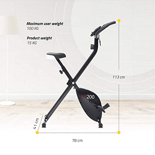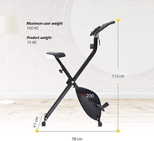 La cyclette XB200 ha un design accattivante, è stabile grazie al telaio in acciaio, e offre prestazioni eccellenti per la categoria. I pedali hanno una superficie zigrinata antiscivolo e sono dotati di una cinghia che aiuta nel fissaggio alla scarpa per evitare che il piede scivoli.
