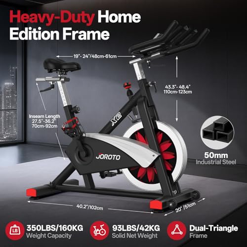 Le dimensioni e l’ingombro sono sicuramente il maggior punto di forza della cyclette professionale X2 di Joroto. Il brand infatti vanta dimensioni molto compatte ma comunque comode per l’utente, date le numerose regolazioni che possono essere messe in atto su manubrio, telaio e seduta. La cyclette professionale X2 di Joroto non è ripiegabile, quindi non può essere riposta in pochi centimetri di spazio come altri prodotti dai prezzi simili, ma la leggerezza e le dimensioni minime rendono possibile lo spostamento frequente e il posizionamento anche in ambiente domestico. Le dimensioni sono: 109 x 50 x 108 cm (L x P x A).